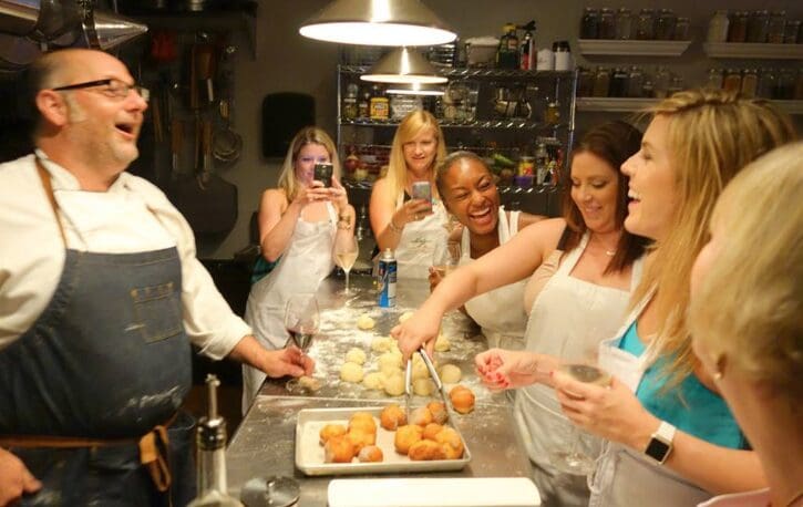 Lead by Jerry Pellegrino, the chef/owner of Schola Cooking School in Baltimore, Maryland. The interplay between food and wine fascinates Chef Pellegrino, with his understanding of the two at the molecular level a direct result of his Doctoral work in molecular biology at Johns Hopkins University. His cuisine is simple and surprising, pairing unexpected ingredients that worked together with wine lists at all his restaurants; where diners could be swept up in Chef Pellegrino's passion for food and wine and discover the distinctiveness of ingredients and the way they work together. He is currently the co-owner of Schola, a private cooking school, located in the heart of Baltimoreโs historic Mt. Vernon district. He and his partner, Chef Amy von Lange, teach hands-on classes to a variety of students covering a vast curriculum. For 15 years, Chef Pellegrino has served as the Vice Chancellor Culinaire of the Baltimore Bailliage of the Chaรฎne des Rรดtisseurs, certified by the Court of Master Sommeliers and often featured in cooking segments on local television. He is the co-host of the long running radio show on NPR 88.1FM, WYPRโs โRadio Kitchenโ. He has been nominated various years as Chef of the Year, awarded by Baltimoreโs Academy of Travel, Tourism and Hospitality and was named One of Marylandโs 50 Most Influential People in 2017.ย For a full list of awards and honors, head to www.scholacooks.com.
